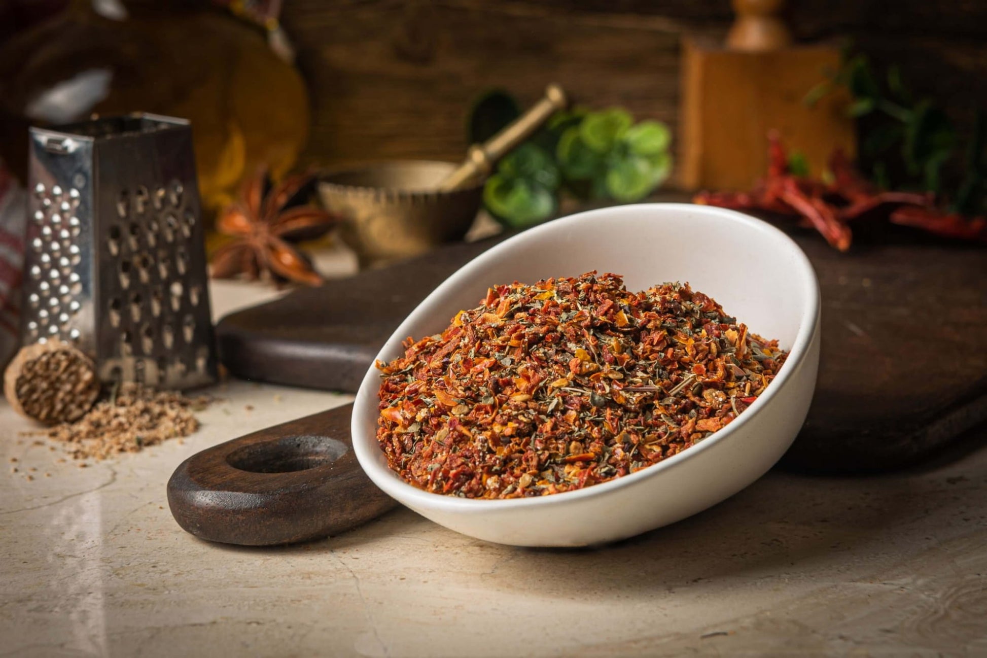 Pomidor z ziołami to starannie skomponowana mieszanka suszonych pomidorów, aromatycznej bazylii i intensywnego czosnku granulowanego. Idealnie podkreśla smak dań kuchni śródziemnomorskiej, dodając im wyjątkowej głębi i naturalnej słodyczy pomidorów. Połączenie suszonych pomidorów z ziołami sprawia, że przyprawa świetnie sprawdza się zarówno w tradycyjnych, jak i nowoczesnych potrawach.